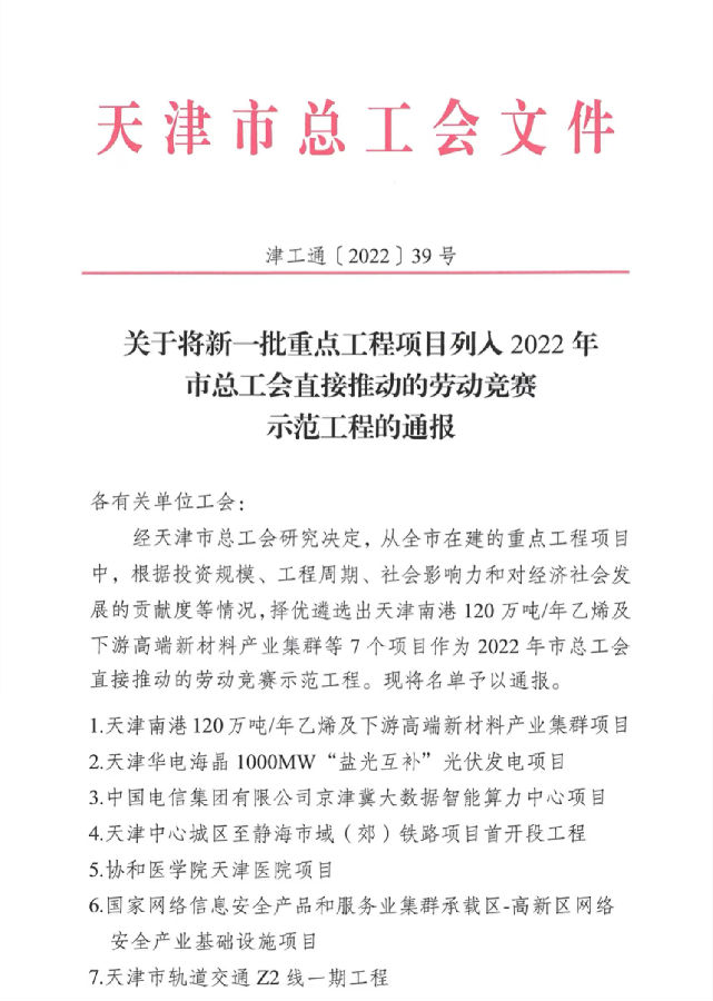 近日,公司天津網(wǎng)絡安全中心項目獲評2022年天津市勞動競賽示范工程。該獎項根據(jù)投資規(guī)模、工程周期、社會影響力和對經(jīng)濟社會發(fā)展的貢獻度等情況,從全市在建的重點工程項目中擇優(yōu)遴選,并發(fā)放一次性工作補助資金20萬元。天津市僅有7個項目成功入選,公司天津網(wǎng)絡安全中心項目榮列其中。