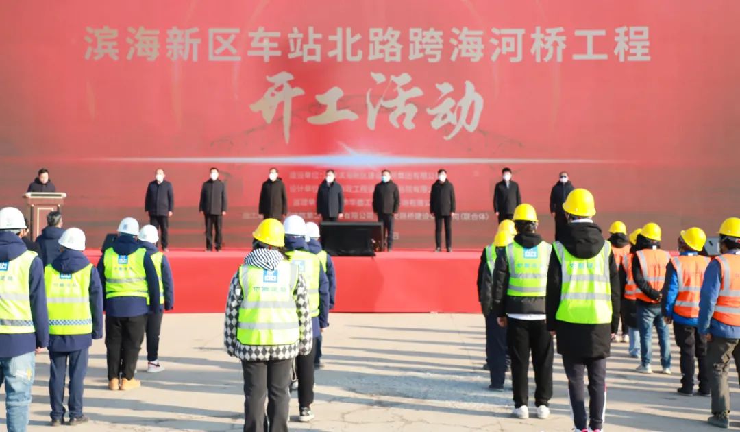 開工儀式由天津市濱海新區人民政府黨組成員、副區長陳波主持,天津市濱海新區區委副書記、區長單澤峰出席并宣布開工,濱海新區區委區政府、區住建委,天津市濱海建投集團,天津市政工程設計研究總院,天津市華盾工程監理公司,中建二局四公司、中交路橋建設有限公司等各方領導代表出席開工儀式。公司黨委書記、董事長劉帥表示,天津市跨海河大橋工程是濱海新區規劃的重要組成部分,承載著濱海新區市民的美好愿景,中建二局將充分發揮“超越至上 唯實惟先”的精神,將工程打造成為經得起歷史和群眾檢驗的品質工程、樣板工程。